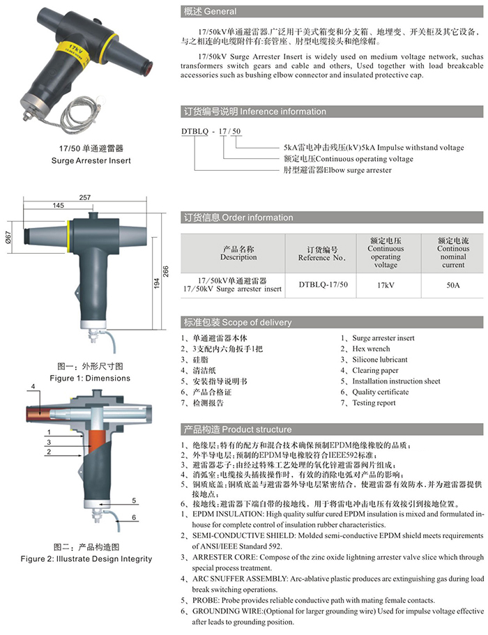 DTBLQ-17/50KV单通避雷器